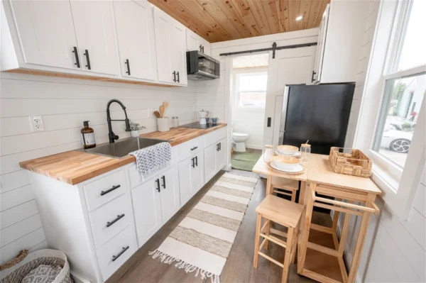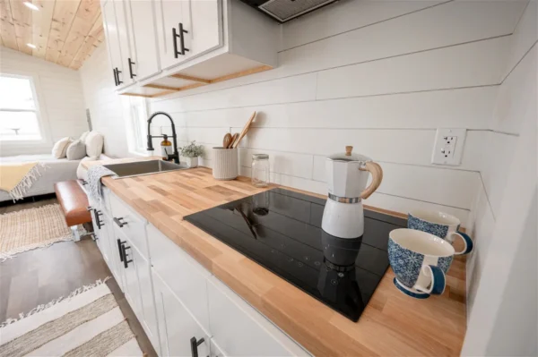 8′ Butcher block countertop (depending on tiny house length) with staining available