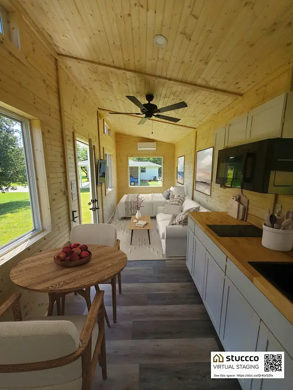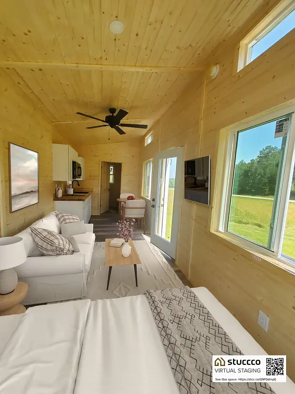 Attention Serious Cash Buyers: This Tiny Home boasts a modern design and surprisingly spacious layout, measuring 28 feet in length and 8 feet in width. Constructed with high-quality materials such as wood framing over a steel trailer, pink fiberglass floor insulation, and ZIP sheathing roof and wall panel system, this Tiny Home is built to last. Energy-efficient features, including metal roofing and energy-efficient insulation, help reduce utility costs and minimize environmental impact. With functional amenities like a 3-piece bathroom, full-size built-in microwave, butcher block countertops, and washer/dryer hookups, this Tiny Home offers convenience and comfort for daily living. Ready for immediate occupancy, this Tiny Home includes GFCI exterior and interior electrical outlets, a 50 Amp plug-in cord, and RV hookups for water and septic connections. , this 2023-built Tiny Home is NOAH certified and ready to hit the road with ease. Contact us to schedule a tour in person . Thank you for your interest in this exceptional property.