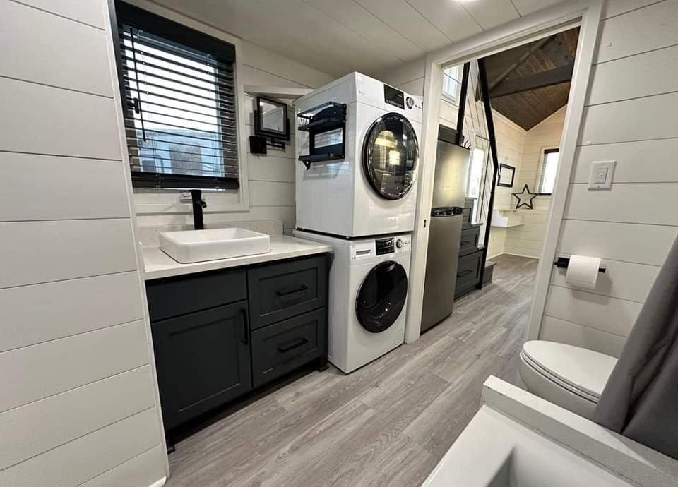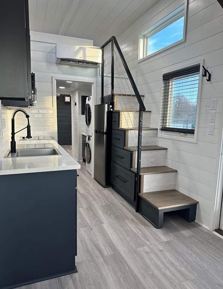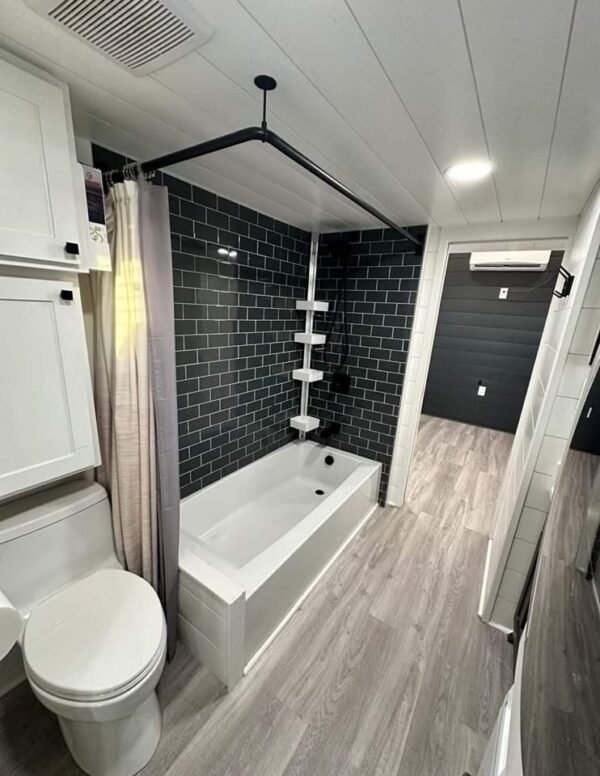 ✅ Features: Bathtub, mini dishwasher, stacking washer & dryer, air exchange system, Abode security system, smart locks, garbage disposal, on-demand water heater, propane stove, and convection microwave!