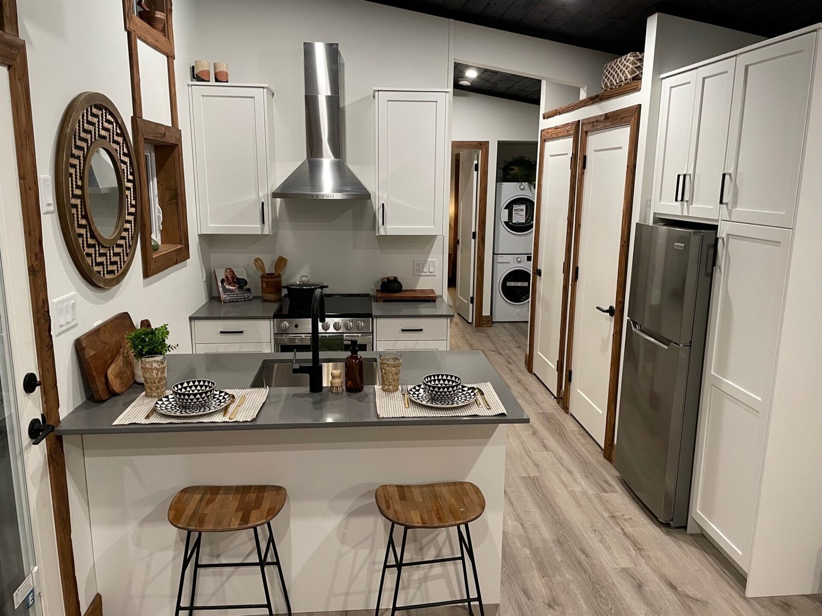 Whether you have just purchased property for vacation or full time use, the Silvertip will provide you with all of the comforts you’re accustomed to—dishwasher, shower, washer, dryer, A/C, electric heat, etc.—combined with the cozy space of a rustic cabin. All our Silvertip homes are built to meet and exceed current BC building codes to ensure that our clients receive the most superior tiny home on the market.